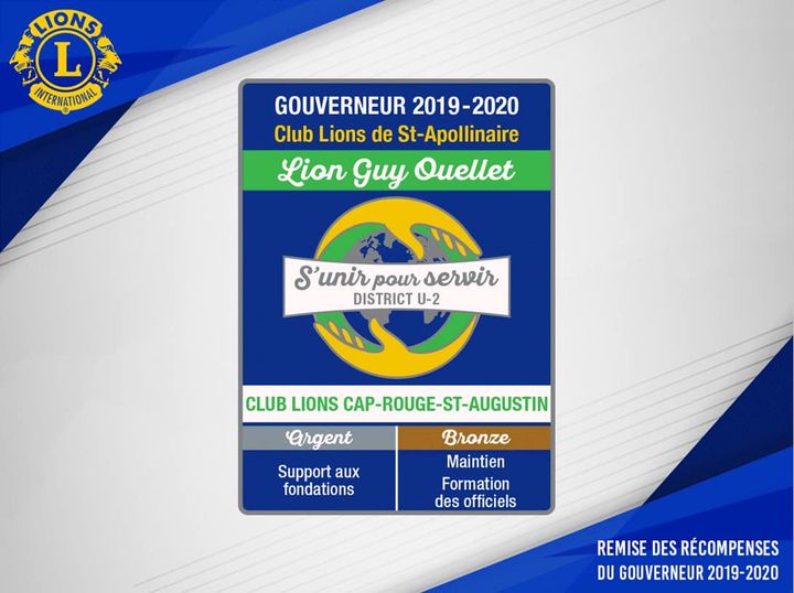 Pour notre support aux fondations des Lions, nous avons reçu l’écusson d’argent.